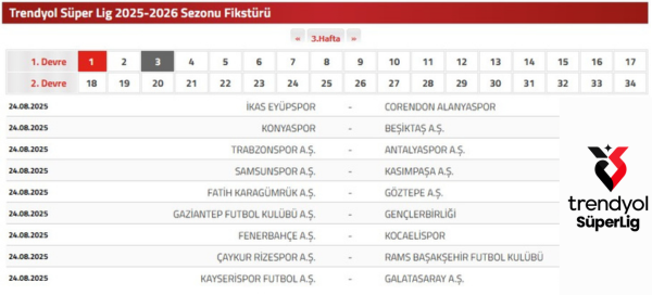 Trendyol Süper Lig Üçüncü Hafta Maçları