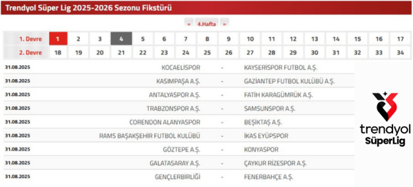 Trendyol Süper Lig Dördüncü Hafta Maçları