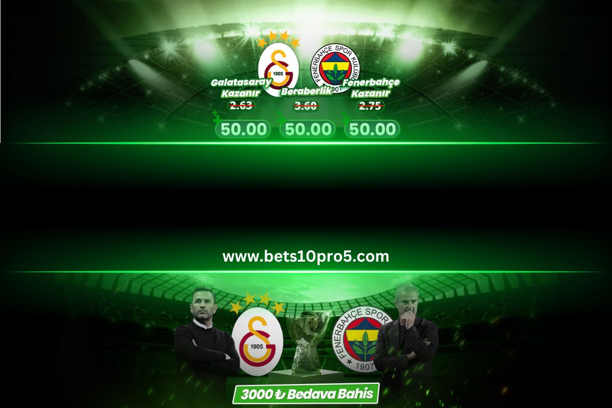 Süper Kupa heyecanı başladı. Galatasaray Fenerbahçe maçı içini kupon oluşturmak isteyen kişiler derbiye yönelik yüksek oranlardan yararlanarak tahminlerinin doğru olması durumunda artırılmış kazançlardan yararlanabiliyor. Bets10 markası yine 50 oran kampanyasını devreye soktu ve Süper Kupada Galatasaray Kazanır, Fenerbahçe Kazanır, Berabere Biter ve 2.5 Gol Üstü bahisleri (bahisler 90 dakika ile sınırlıdır) 50 orana yükseltildi.